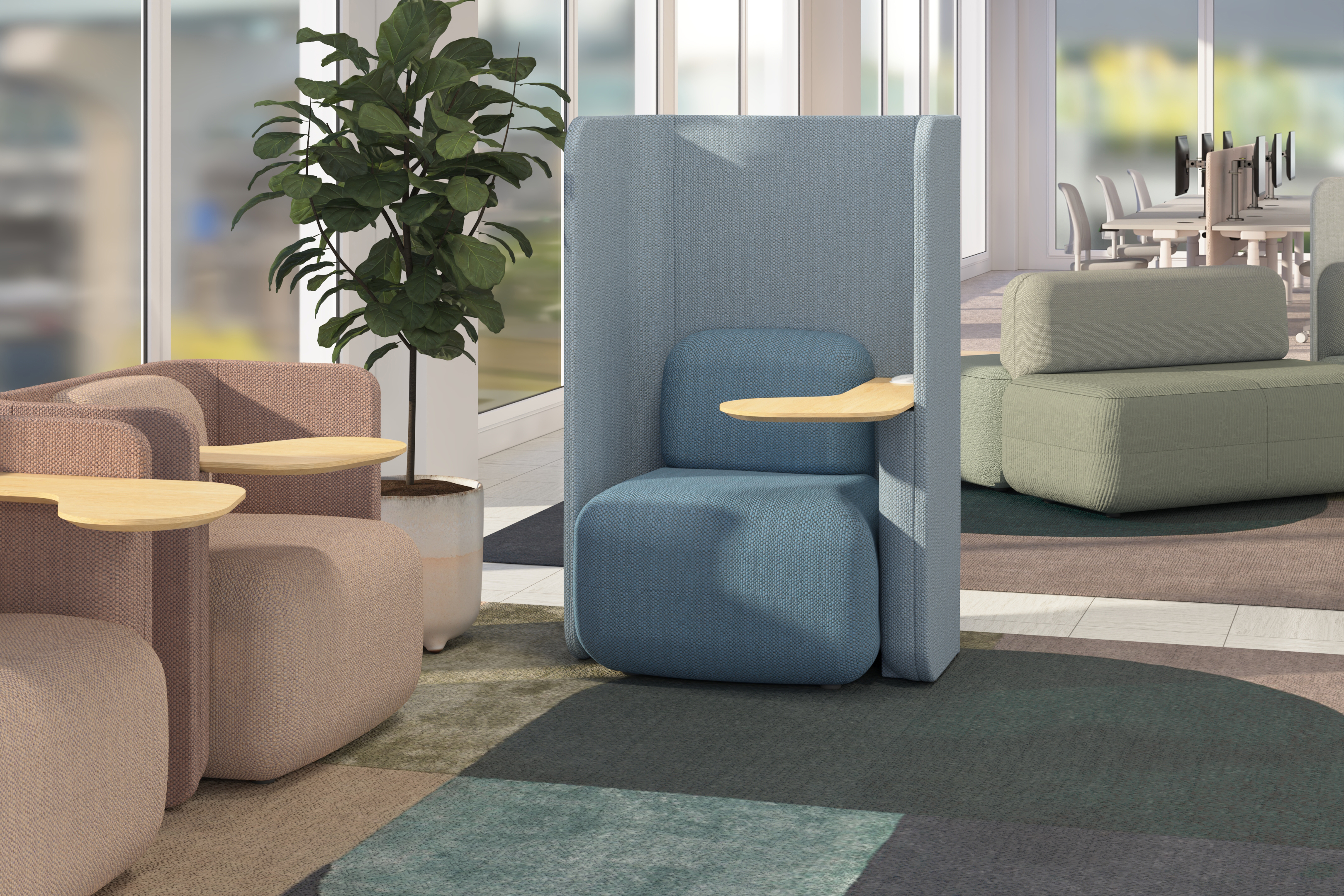 The Precinct Focus Workpod is designed to create moments of quiet focus within the workplace. With two back height options, soft seating, and an integrated table, it offers a comfortable retreat for individual tasks that demand concentration. Optional integrated power ensures devices stay connected, making it a practical and refined solution for modern work environments.