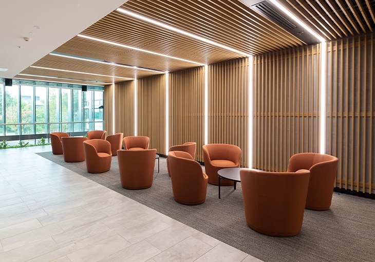 The Department, seeking to capitalise on the benefits of activity-based and flexible working principles, identified a unique opportunity to create a truly bespoke working environment through the integrated fitout of a purpose-built commercial building constructed within Canberra Airport Group’s (CAG) Fairbairn Commercial Precinct in Canberra, ACT.