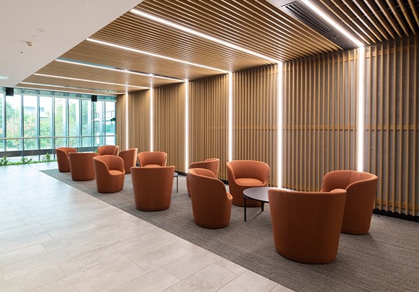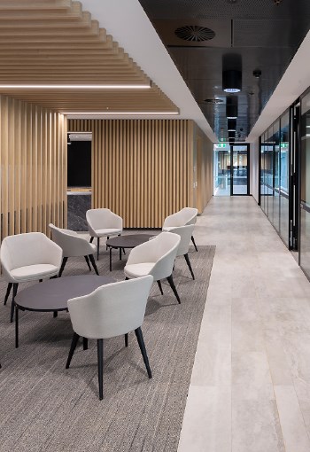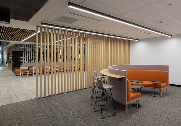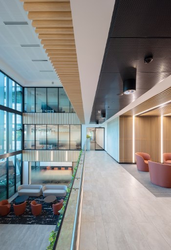 A suite of work zones, tailored to facilitate a range of tasks requiring varied levels of focus and collaboration, are distributed to encourage mobility and interaction, promote collaboration, increase engagement and improve the health and wellbeing of Department staff. The light-filled fitout extends across 3 levels, connected by triple-height atria and floating communication stairs. Utilising a suite of activity “zones” and integrating a sophisticated ICT system, AMC has created a working environment that is responsive and flexible to the needs of users, catering for a range of work modes and interactions within an inviting and contemporary setting.